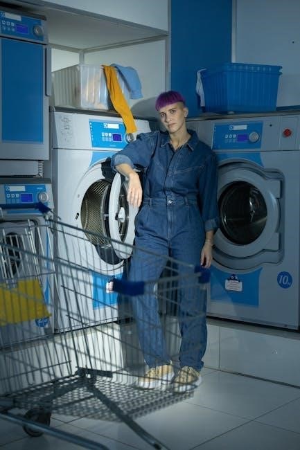 Add detergent and any desired additives to the dispenser drawers, following the manufacturer’s instructions. Press the start button to initiate the wash cycle. Always refer to the control panel overview for detailed cycle settings and options.